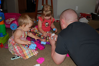 This morning we got a late start and missed first service so we played with Gabby's new blocks.