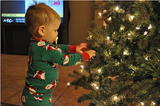 This weekend we put up the tree. The kids had so much fun going through their ornaments. Jeremiah was funny trying to find things to put on the tree. He kept trying to add his plastic toy balls and they would fall through the branches. Later that night I found a plastic monkey cup that he finally got on there to stay. All the ornaments are on the top 2/3 but his cup on the only one on the bottom.